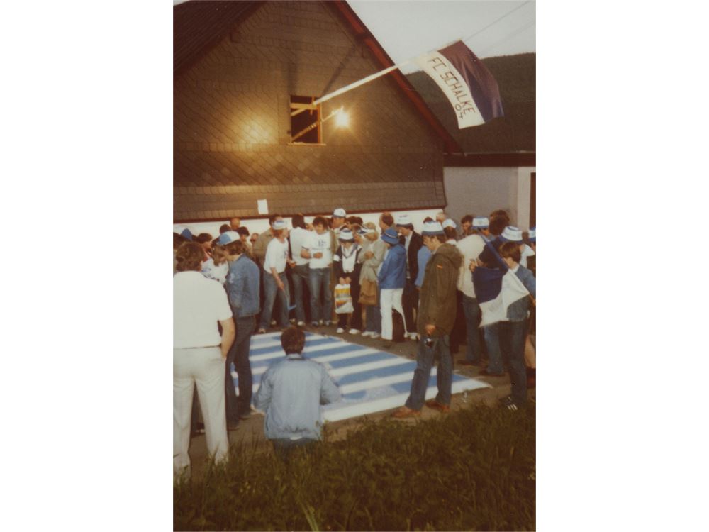 Nachdem wir wieder zu Hause angelangt waren, sprich in unserer Gastwirtschaft Latt, wurde auf öffentlicher Straße, zur Freude des Schalker Aufstieges, ein blau-weißer Zebrastreifen gemalt. Dieser wurde in der Nacht zum Sonntag von einem Unbekannten mit Altöl verunstaltet.