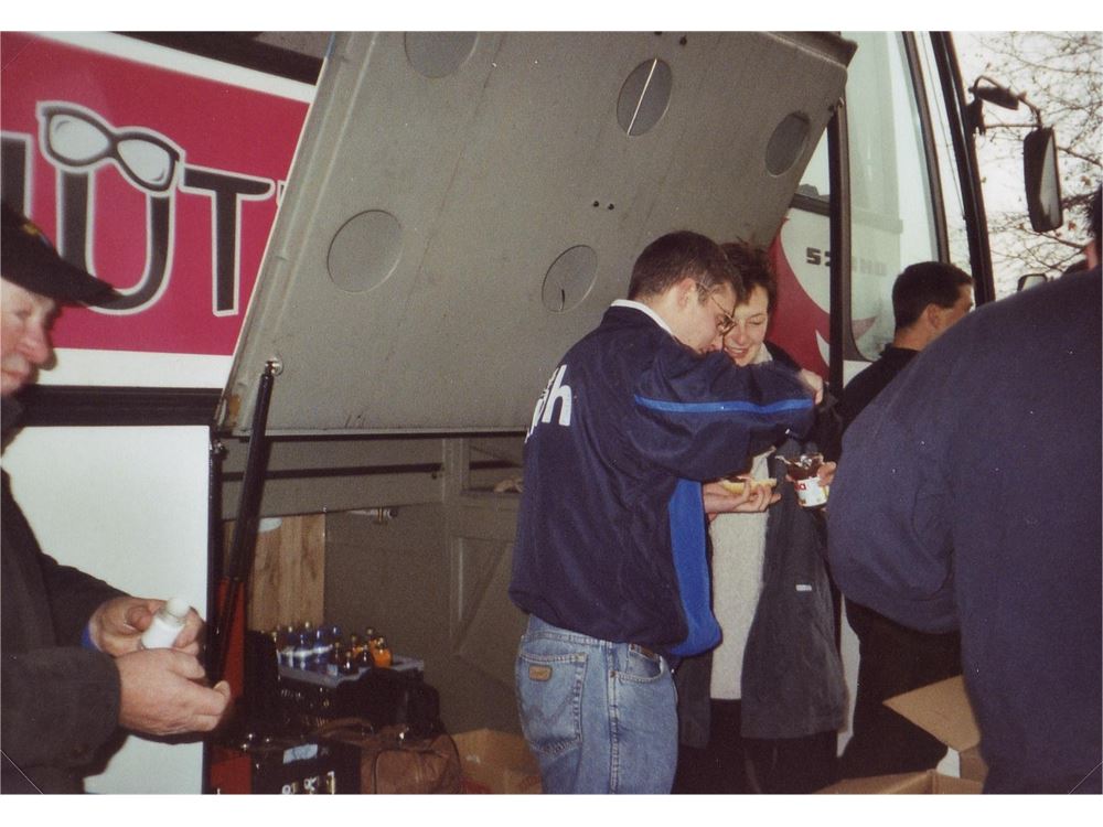 Wegen des anhaltenden Regens auf der Hinfahrt musste der Bus in Würzburg die Autobahn verlassen, so dass dort unter einer Brücke unmittelbar am Main einigermaßen geschützt das Frühstück eingenommen werden konnte. Auf Bierkästen wurde eine provisorische Theke aufgebaut, wo belegte Brötchen, Kaffee, Tee und Orangensaft gereicht wurden. So wurde das Frühstück trotz des schlechten Wetters zu einem richtigen Erlebnis.