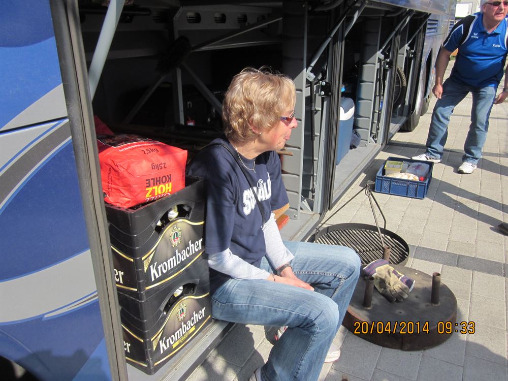 Auch am Sonntag wurde ausgiebig gefrühstückt. Der Frühschoppen am Bus fiel zunächst etwas kürzer aus, da der Bus vom Hotelparkplatz auf den in wenigen Metern entfernten ALDI-Süd-Parkplatz umgeparkt werden musste. Dort wurde dann innigst weiter gefrühschoppt. Zur Mittagszeit wurden dann der mitgebrachte Grill und die Wittgensteiner Wurst- und Fleischwaren ausgepackt. Grillen am ALDI war angesagt. Bei wunderschönem Wetter konnte der Ostersonntag mit kühlem Bier und heißen Grillsachen richtig genossen werden. Irgendwann war es dann an der Zeit, unsere Zelte ab- und ins Stadion aufzubrechen. Alle haben vor dem Spiel gehofft, die 0-3-Pleite aus der letzten Saison wieder wettzumachen, welche als Tagesfahrt ebenfalls von uns besucht wurde. Leider konnte unsere junge Truppe an die zuletzt guten Leistungen nicht anknüpfen und verlor das Spiel mit 3-1. Einen großen Vorwurf konnte man dieser Truppe nicht machen, irgendwann war ja mal mit einem Einbruch zu rechnen gewesen. Die nächsten Spiele, Gladbach ausgenommen, haben dann wieder das wahre Gesicht der Mannschaft gezeigt: Die direkte Qualifikation zur Champions League wurde geschafft.
